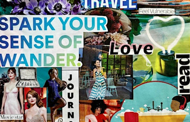 Through the art of collage, you’ll blend imagery, textures, and colors to create a personal vision board that reflects your dreams and aspirations.