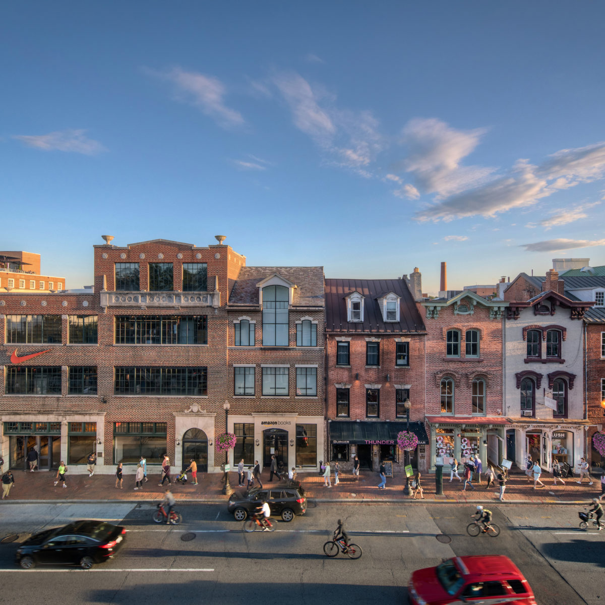 Georgetown’s unique commercial real estate combines small spaces in historic industrial buildings, modern office buildings overlooking the Potomac River, and redevelopment opportunities bringing activity to underused spaces.