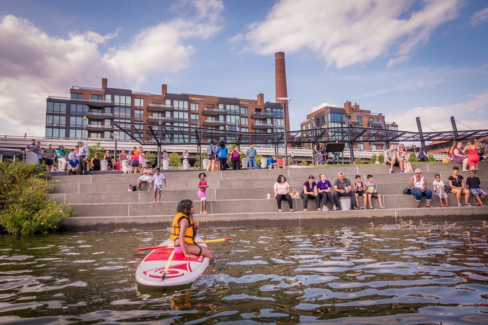 A. Georgetown Waterfront Park offers 10 acres of recreational space along the Potomac River. A large fountain is also a favorite among children.
