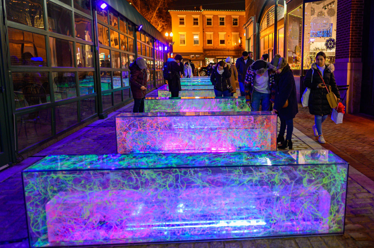 Georgetown is also known for its small, independent shops along Wisconsin Avenue and Book Hill; the C&O Canal; recreational activities along the Georgetown Waterfront; Blues Alley; annual events such as Georgetown GLOW and the Georgetown French Market; a bowling alley and AMC movie theater; the Georgetown Design District in Cady’s Alley; Georgetown University; The Exorcist stairs; the JFK proposal booth at Martin’s Tavern; world-class hotels; and fantastic dining and bakeries – from Fiola Mare to Filomena, Chaia, Georgetown Cupcake and Baked & Wired.