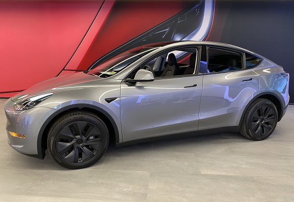 Several electric vehicles are on display at the showroom, with demo drives and full self-driving (supervised!) coming soon.