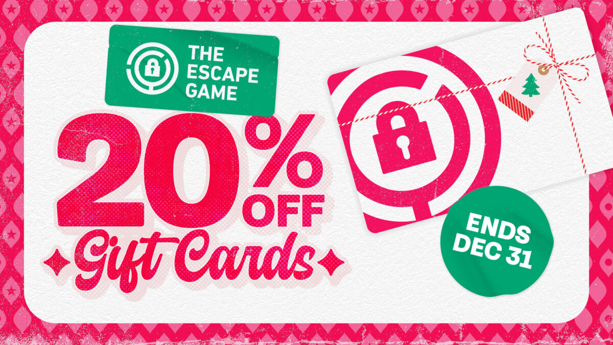 Unlock the perfect holiday gift with 20% off gift cards to play The Escape Game! This is the perfect experiential present for your family, friends, kids, or even yourself! Don’t miss out on the sale. Offer ends Dec 31.