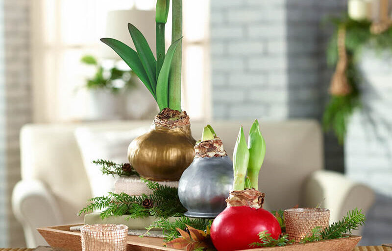 A perfect hostess gift, these gorgeous waxed Amaryllis bulbs bloom and bloom, brightening up a winter day.