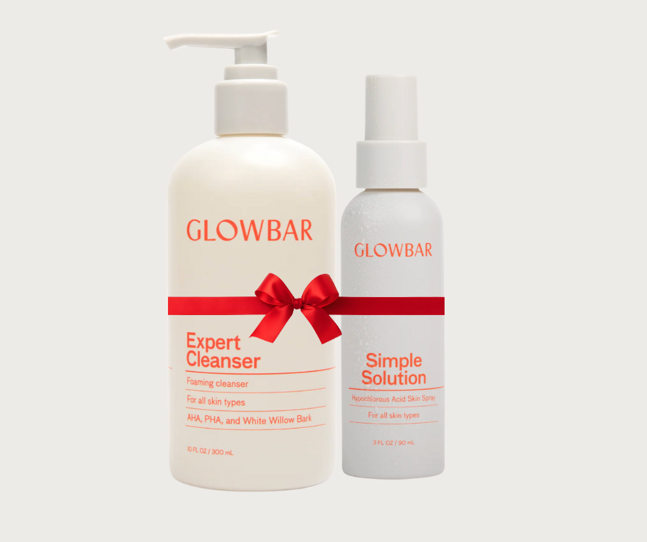 A bundle of our two best-selling Glowbar products, the Expert cleaner and Simple Solution. Expert Cleanser is a gentle foaming cleanser that clings to dirt, oil, pollution, and makeup. Rinses clean, leaving skin softer, smoother, and more balanced. Simple Solution is a hypochlorous acid spray that efficiently soothe irritation, relieve redness, and protect skin barrier.