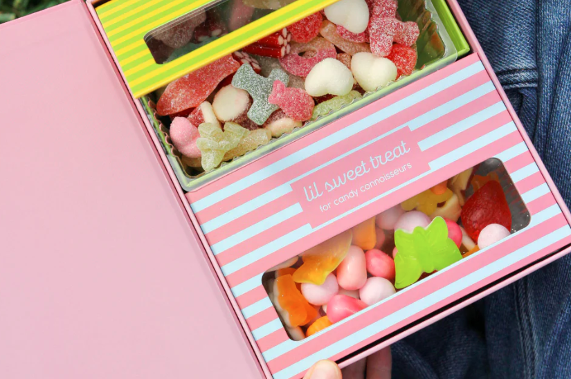 Each collectible box features one of three designs, making it a fun and thoughtful way to give candy gifts, sweet treats, or custom gift boxes for any celebration. Inside, select your preferred candy setup: two branded striped boxes or a classic lil sweet treat bag, both filled with globally sourced gummies. Choose from sweet, sour, gluten-free sweet, or gluten-free sour candies for a treat that’s as personal as it is memorable.