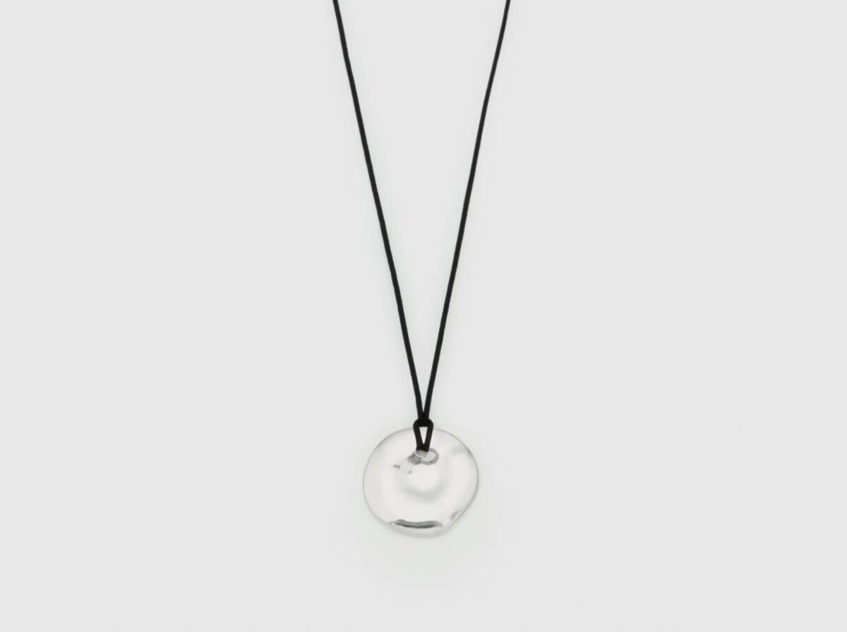 A simple, adjustable necklace featuring a metal keeper closure and a pendant with a width of 36mm and a height of 34.5mm.