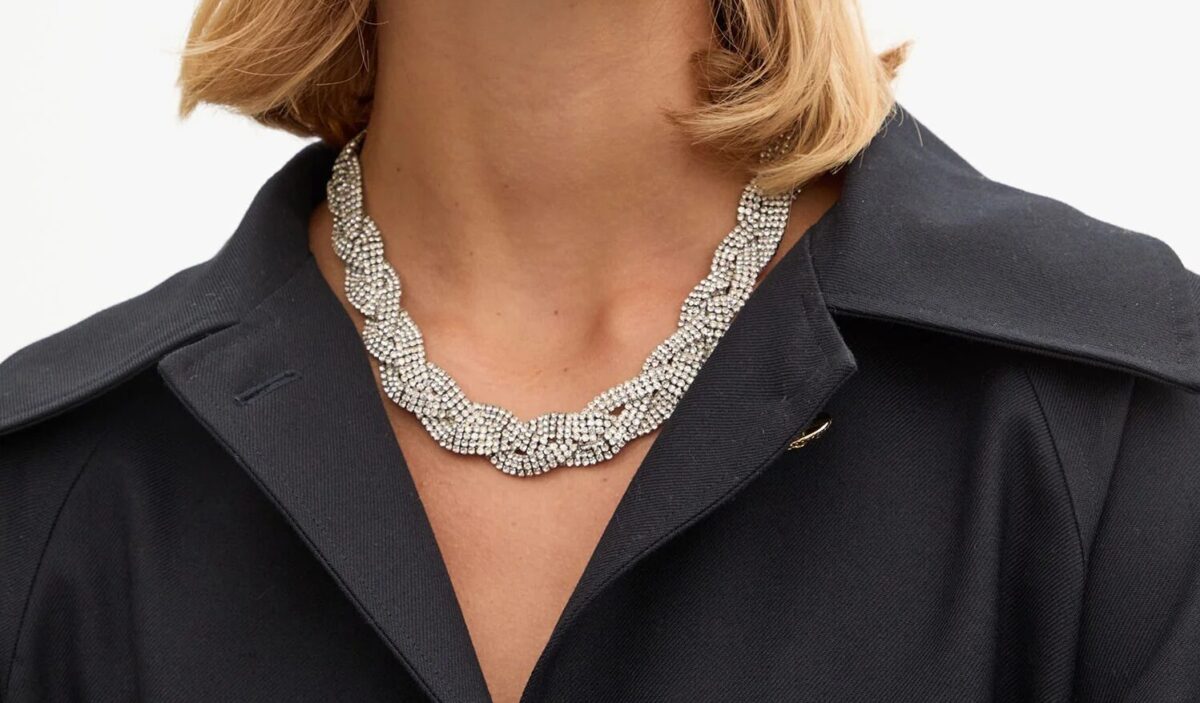 Party on with this collar made from vintage gold-plated brass and pavé glass stones.