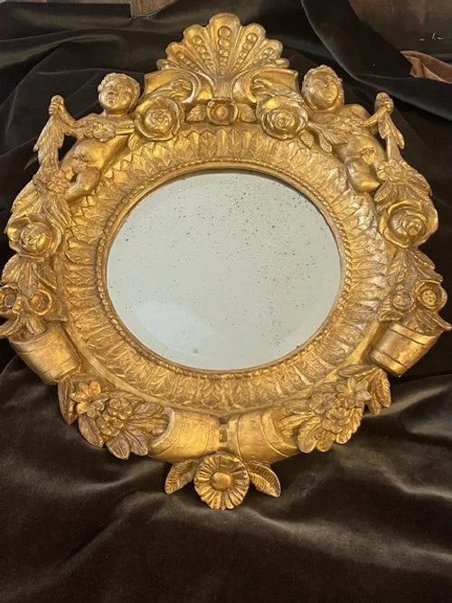 A beautiful late 17th or early 18th-century decorative piece that combines timeless vintage style and original mirrored glass with a luxurious giltwood finish featuring exquisite European craftsmanship, reflecting the glittering soul of the season.