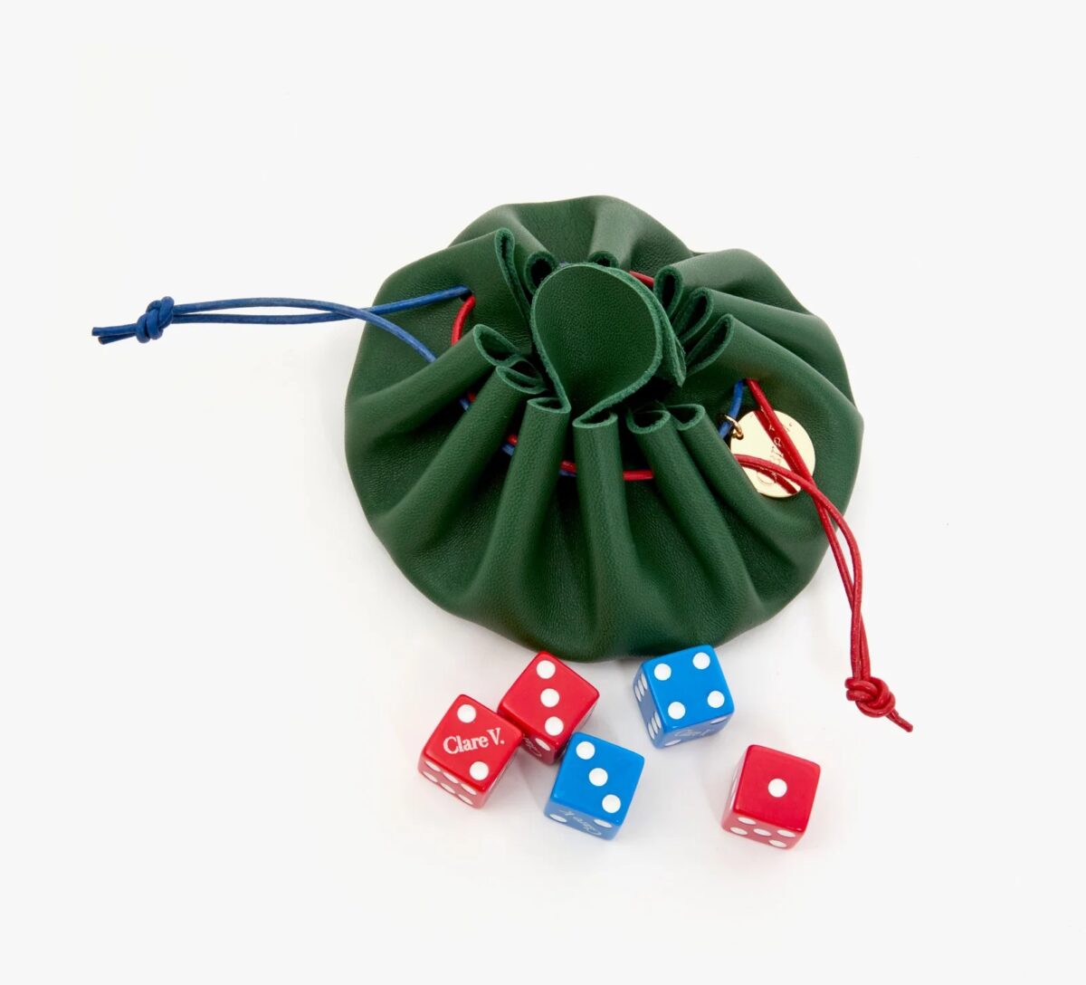 Five dice and four games, all in a soft Italian nappa leather pouch. Bonne chance!