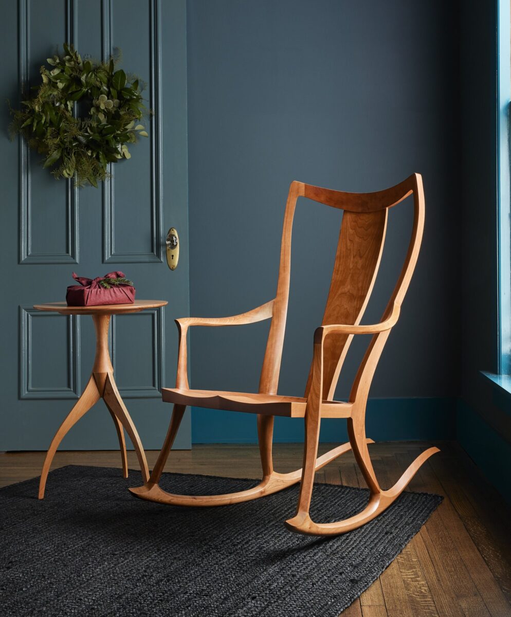 In his designing of the Pasadena Rocker, David Moser employed a sculptor’s eye, envisioning the piece as a singular form, rather than a series of components. The rocker is the progeny of a long line of high craft designers builders. Built of dense, workable North American hardwoods, the Pasadena Rocker gives the illusion that it was freed from a single piece of wood.