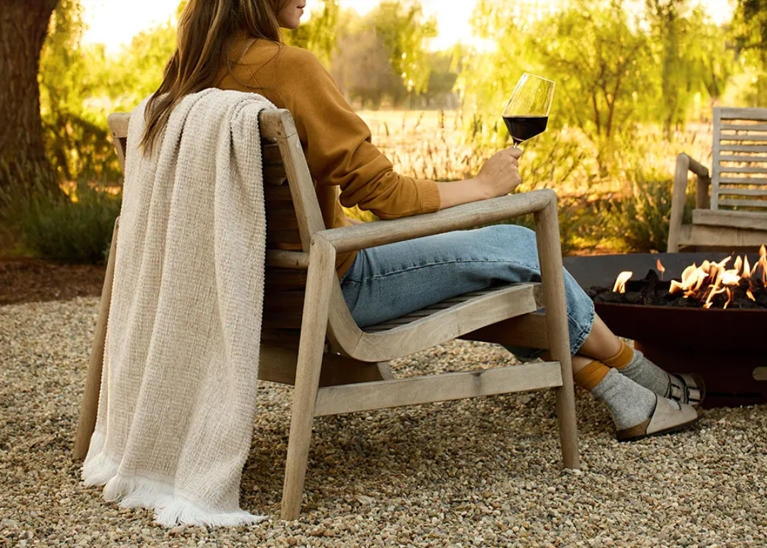 Perfect to cozy up by the fireplace, inside or out, with a machine-washable and dryable indoor/outdoor throw blanket from Sunbrella.