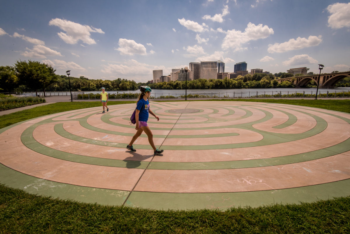 Georgetown Waterfront Park offers 10 acres of space to bike or walk along the Potomac, picnic in the grass, run through the water fountain during the summer, or cultivate a zen moment on the labyrinth.