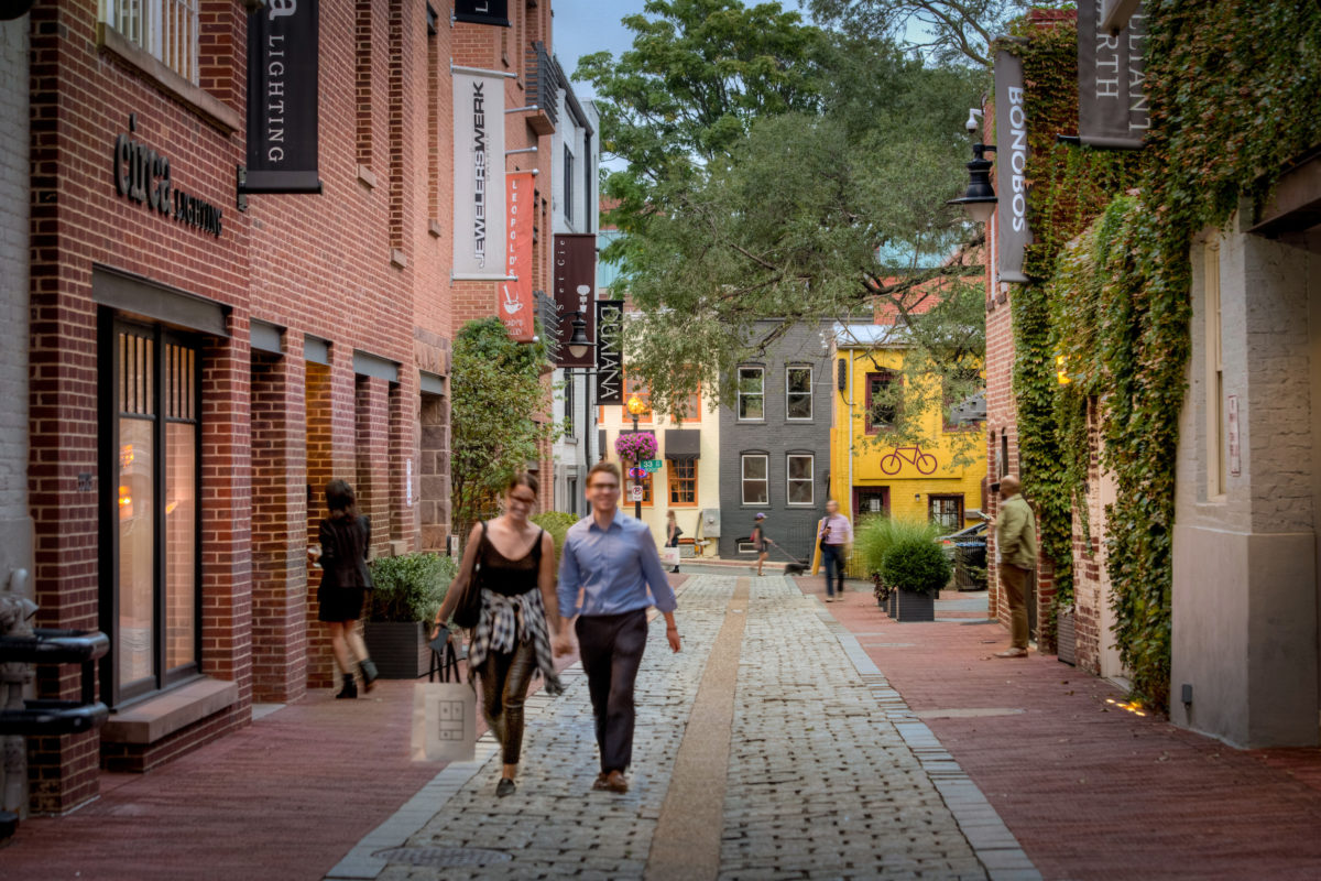 Visit Georgetown’s Book Hill along the 1600 block of Wisconsin Avenue for gallery-hopping, antiques, a French bakery, and great small business shopping.