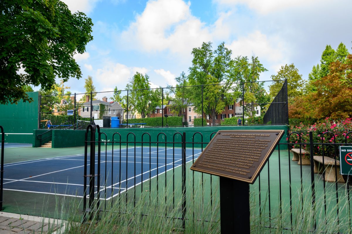Follow Cultural Tourism DC’s African American Heritage Trail (below) to see the institutions and homes of Herring Hill, a 15-block area of eastern-most Georgetown that was a home for families migrating to Washington after the Civil War. Other points of interest include the site of formerly enslaved Georgetown resident Yarrow Mamout’s home, the Mount Zion / Female Union Band Society Cemetery, and the Rose Park tennis courts—dedicated to the star Peters sisters.